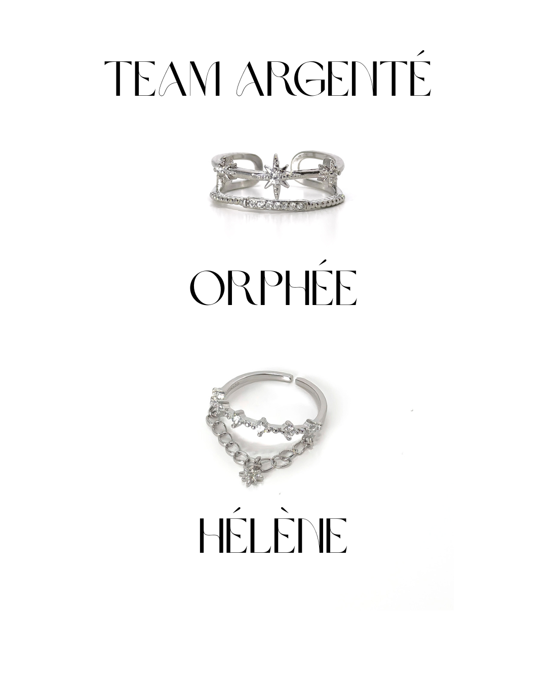 Deux bagues fines et étincelantes 💎 pour celles et ceux qui aiment les détails. Orphée apporte une touche céleste ⭐ tandis qu’Hélène offre un design moderne et raffiné. Un duo brillant à porter ensemble.